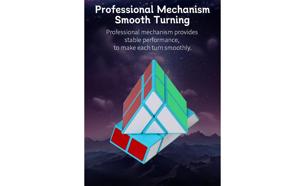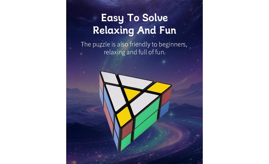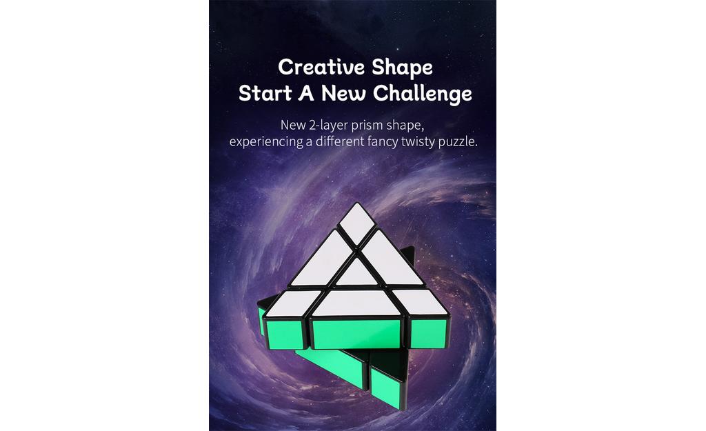 Unique prism design: A new 2-layer triangular prism shape for a different solving experience than a traditional cube.