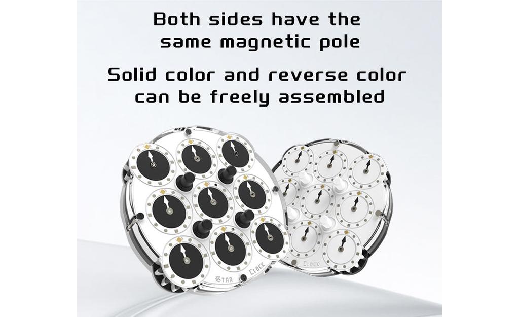 The ESTAR Clock (Magnetic) – Bearing is a high-performance magnetic clock speed cube built for fast, repeatable turns and precise alignment. A refined magnetic positioning system helps each move “lock” into place, while optimized low-resistance gears and bearings reduce drag for smoother rotation. With adjustable magnet configurations, repulsion magnets, and a durable structure designed to prevent magnet loss, this clock is made for both newer solvers who want reliable alignment and experienced clock specialists chasing consistency at speed.