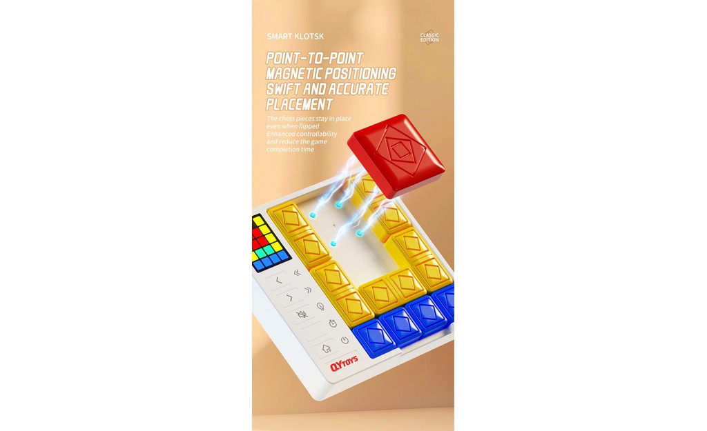 QiYi Smart Klotski is an interactive game for the entire family! The goal is to arrange the colored pieces to match the configuration shown on the screen.