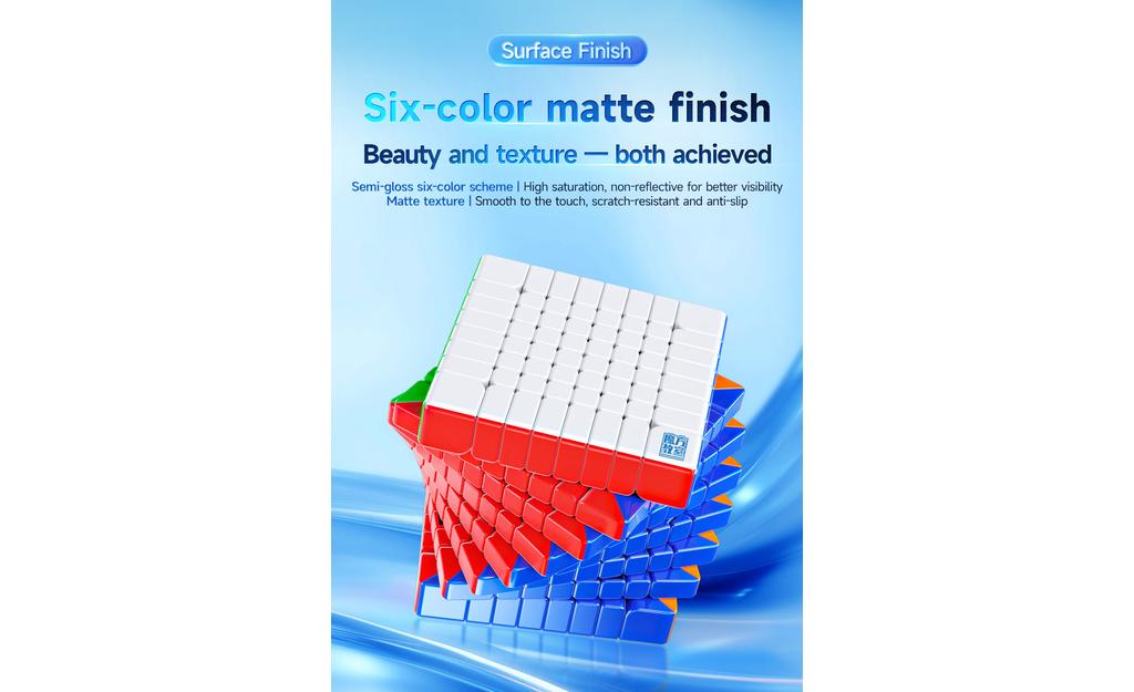 The MoYu MeiLong 8x8 V3 is a compact, lightweight 8x8 speed cube designed to make big-cube solving smoother, more comfortable, and easier to control. With a smaller 65.5mm size (3.5mm smaller than the previous generation) and a lighter ~172g build, it’s easier to hold and less fatiguing during long sessions. A stability-focused internal design helps reduce layer shifting and lockups, while adjustable tension lets you tune the feel to match your turning style.