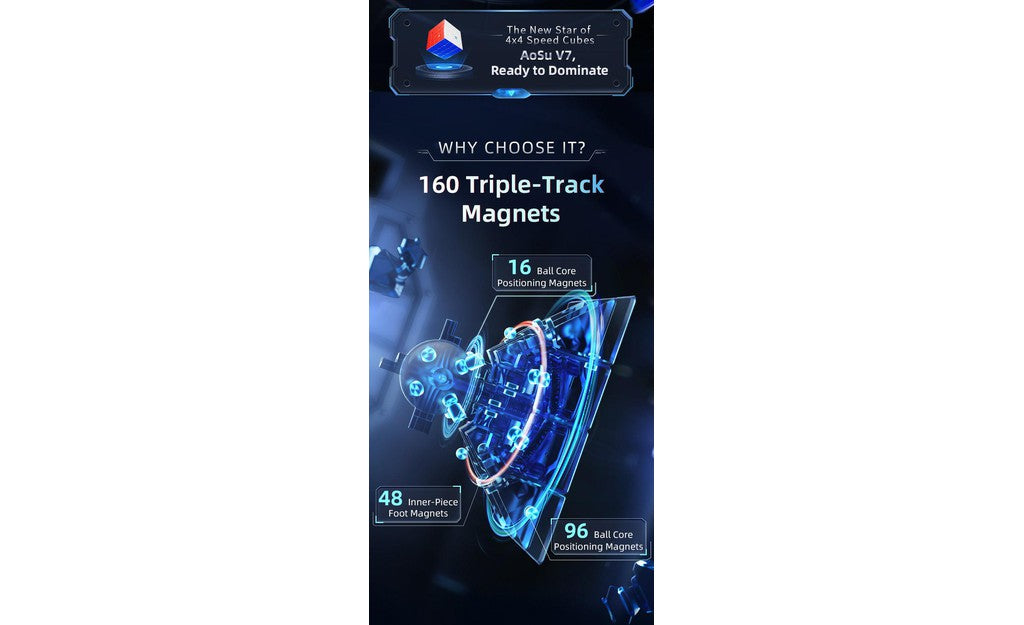 Max Park AoSu 4x4 V7 Triple-Track (Magnetic, Ball-Core, UV Coated) was used to set the World Record average of 18.74 seconds!