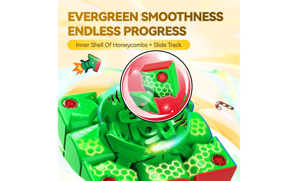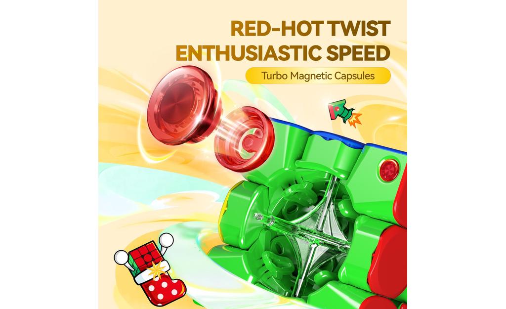 The GAN 356 ME 3x3 (Magnetic) – Christmas Edition is a festive, beginner-friendly speed cube tuned for smooth, accurate turning with classic GAN feel. Internal piece magnets create a precise “click” for each layer, while GES Pro+ elasticity and a wing-shaped core 2.0 add stability and control. A frosted exterior, green internals, and red turbo magnet capsules finish the special holiday look—perfect for gifting or daily practice.