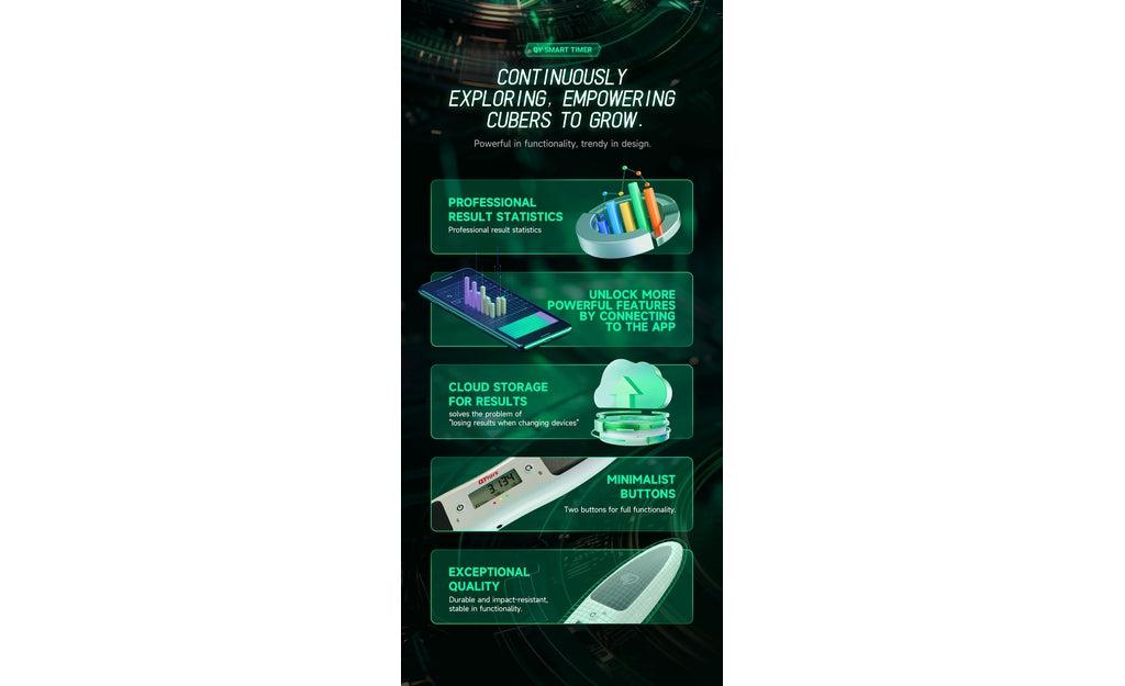 The QiYi Smart Timer (Bluetooth) is a feature-packed speed cube timer that lets you connect to your phone for an enhanced solving experience! This versatile cube timer is perfect for precision solve tracking, making it one of the most innovative cube timers available today.