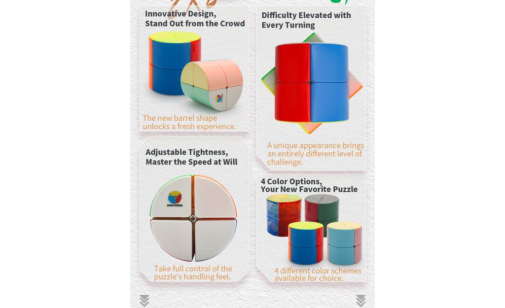 More than a normal 2x2: The barrel shape creates multiple solved states, making it more engaging to solve and re-solve.