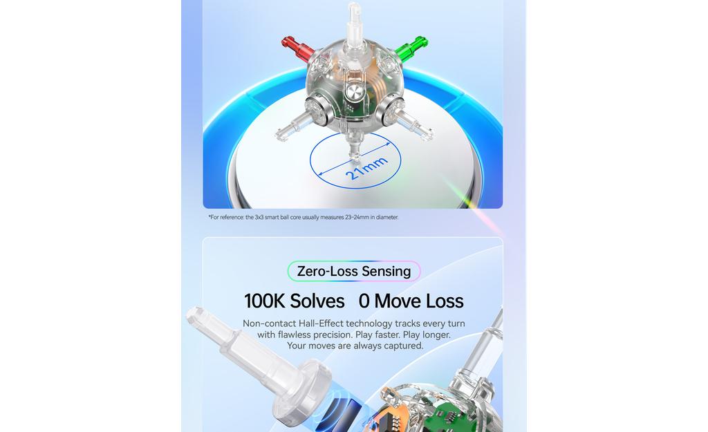 Zero move loss tracking: Precision sensing is designed for long-term accuracy—built for up to 100,000 solves with 0 move loss.