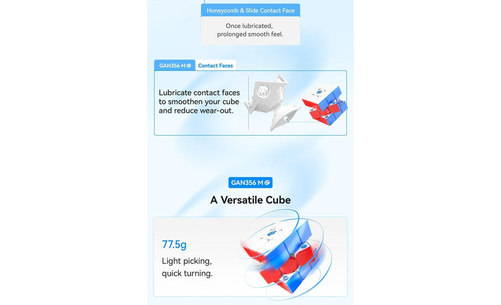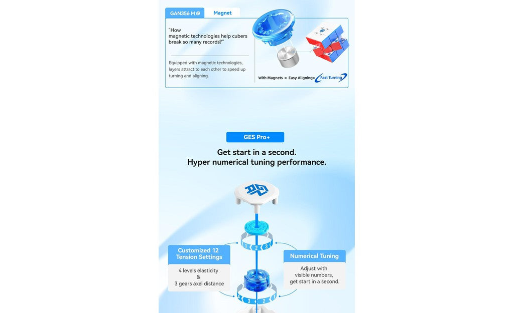 I’ve been using this GAN cube for a while now, and I can confidently say it lives up to the hype. Right out of the box, the cube feels incredibly smooth and fast, with that signature GAN light and airy turning that makes every solve feel effortless. The factory setup was already very good, but after a few minor tension and compression adjustments, it became absolutely amazing.