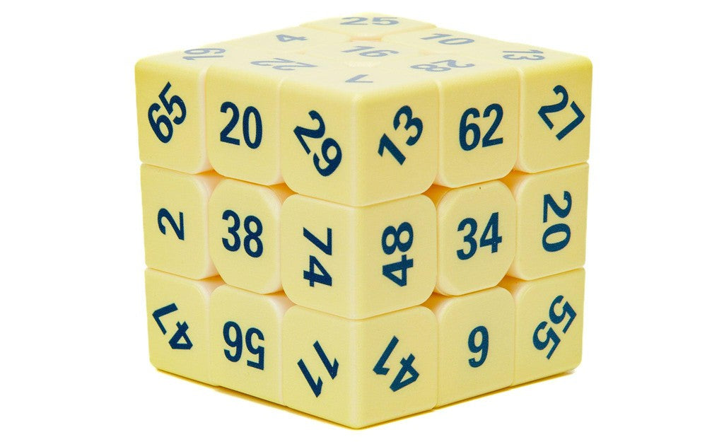 MAGIC CUB3D presents an innovative take on the popular 3x3 by integrating the classic magic square concept. When solved, each face has a unique magic number that can be arrived at by adding any row, column, or diagonal! This puzzle features a speed cube design that allows for smooth turning and a yellow/blue color combination that lets the numbers stand out nicely for an enjoyable yet challenging solving experience.