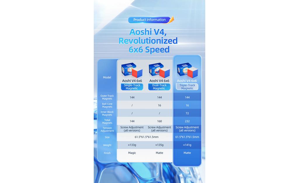 If you want a compact magnetic 6x6 speed cube that prioritizes outer-layer alignment, smooth turning, and reduced fatigue, the MoYu AoShi 6x6 V4 Single-Track (Magnetic) is an excellent choice for practice and competition.