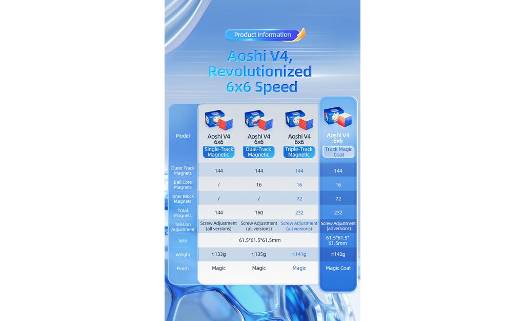 If you want a high-end UV coated 6x6 speed cube that prioritizes stability, alignment, and smooth multi-layer flow, the MoYu AoShi 6x6 V4 Triple-Track (Magnetic, Ball-Core, UV Coated) is built to deliver.