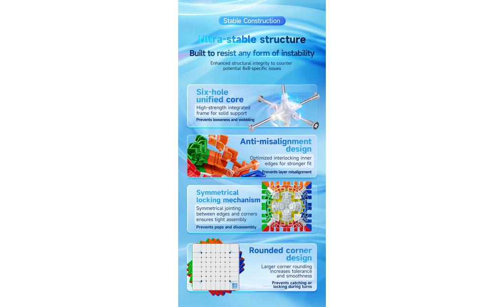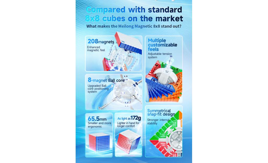 If you want a compact 8x8 magnetic speed cube that prioritizes stability, alignment, and comfortable long-session solving, the MoYu MeiLong 8x8 V3 (Magnetic, Ball-Core) is built to deliver.