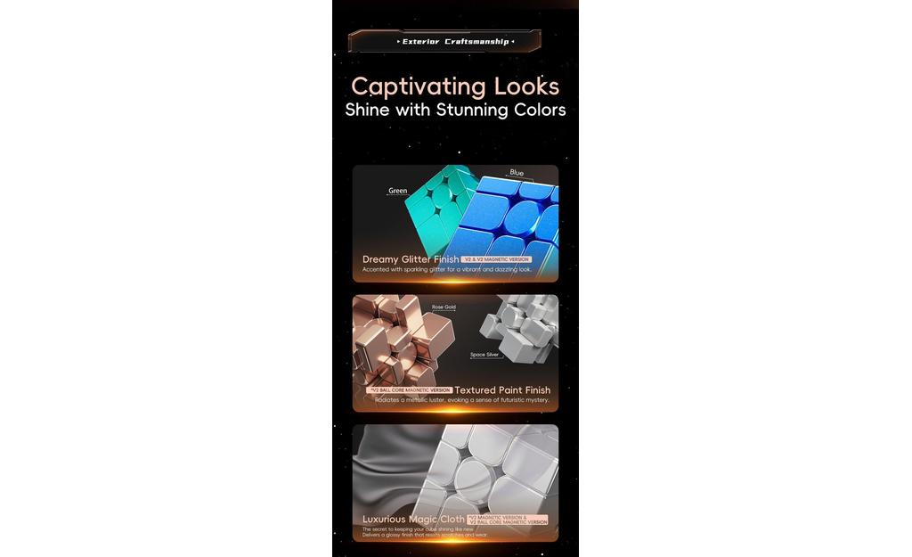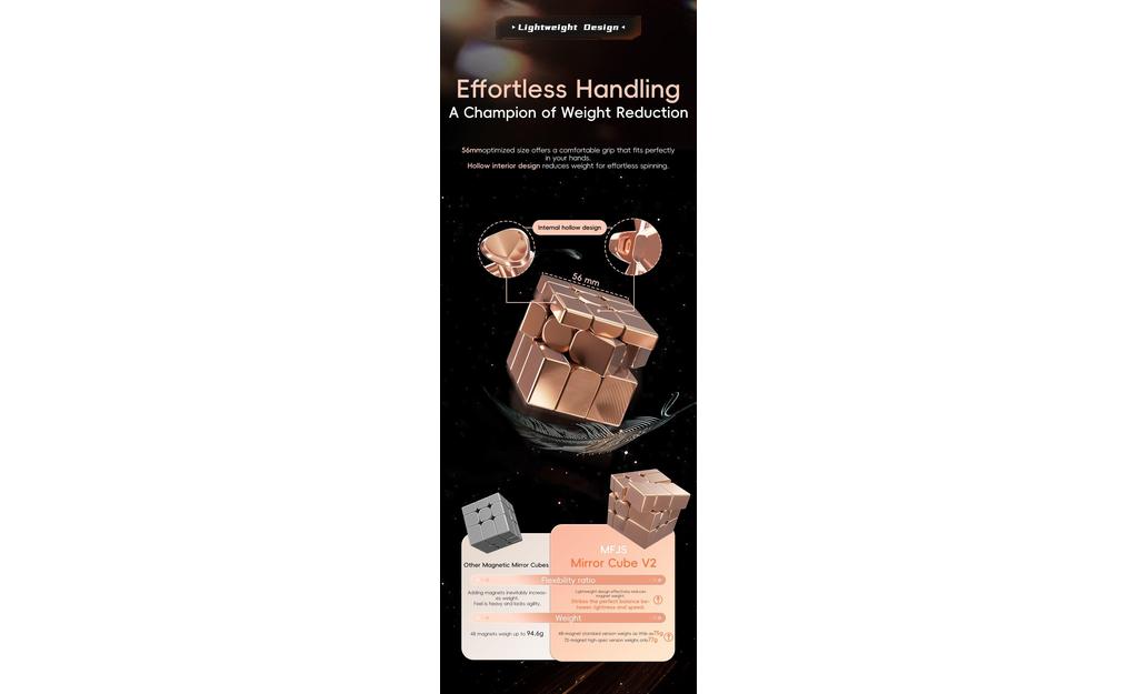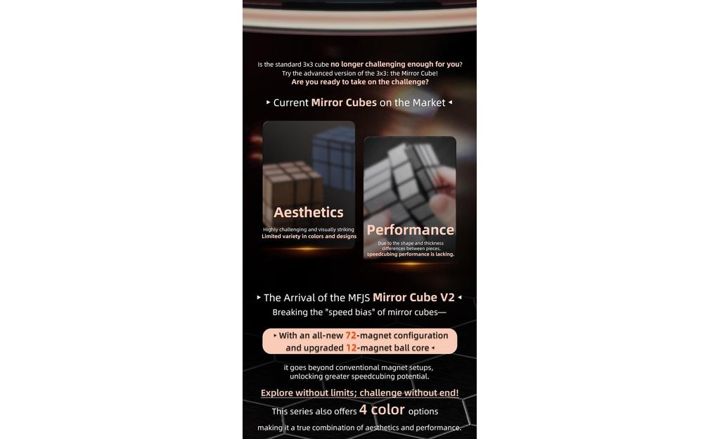 The turning is very smooth, and, for a mirror blocks cube, the corner cutting is great. The magnets are on the stronger side, but they're not too strong. They make the cube nice and stable. I love that there's a silver option unlike the GAN. The shortest layer is difficult to tension without making the center cap bulge too much, but I was able to find a good enough axis distance. Given the design of the mirror blocks cube in general, I'm not sure how avoidable this issue is.