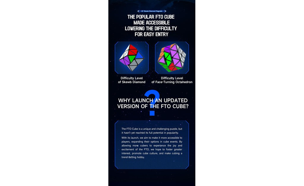 QiYi 2x2 FTO Skewb Diamond (Magnetic, Tiled) is a fun beginner-friendly version of the popular FTO puzzle!