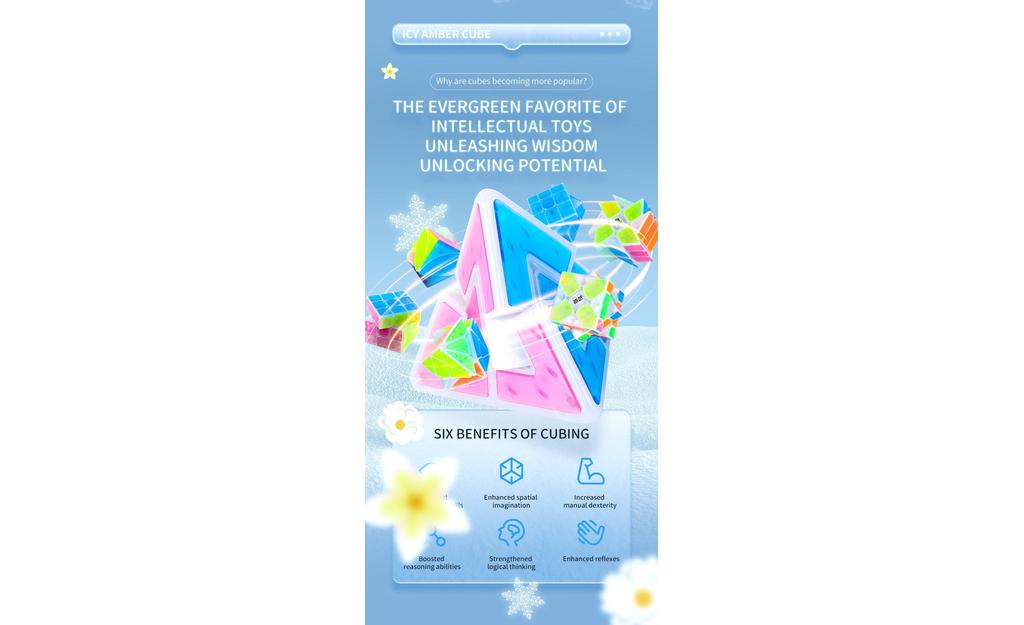 QiYi Axis Cube (Tiled) - Icy Amber features a stunning transparent "ice" plastic with transparent colored tiles. The Axis Cube is a classic 3x3 shape mod solved by shape and color! This puzzle is a great first shape mod and features internal design upgrades to improve the overall turning feel.