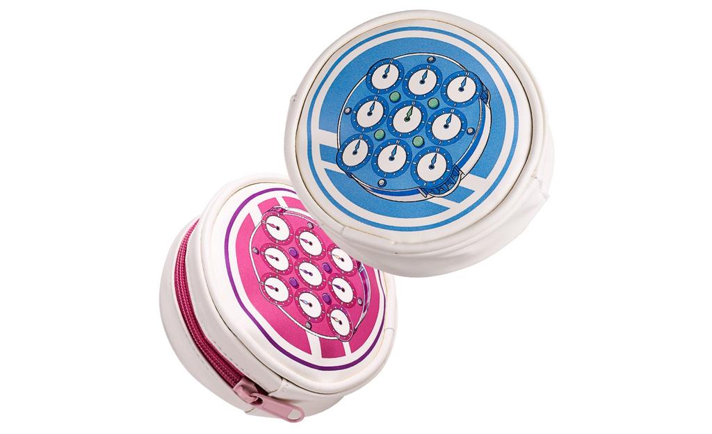 Clean, timeless look: Simple clock pattern design in a round pouch format.