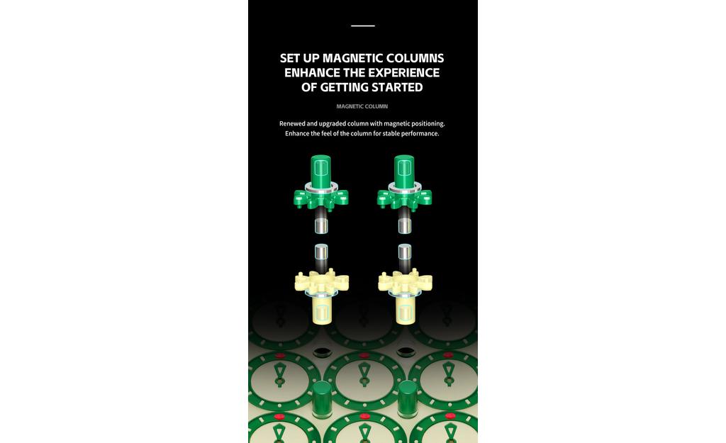 - Mechanism: magnetic positioning + upgraded magnetic columns