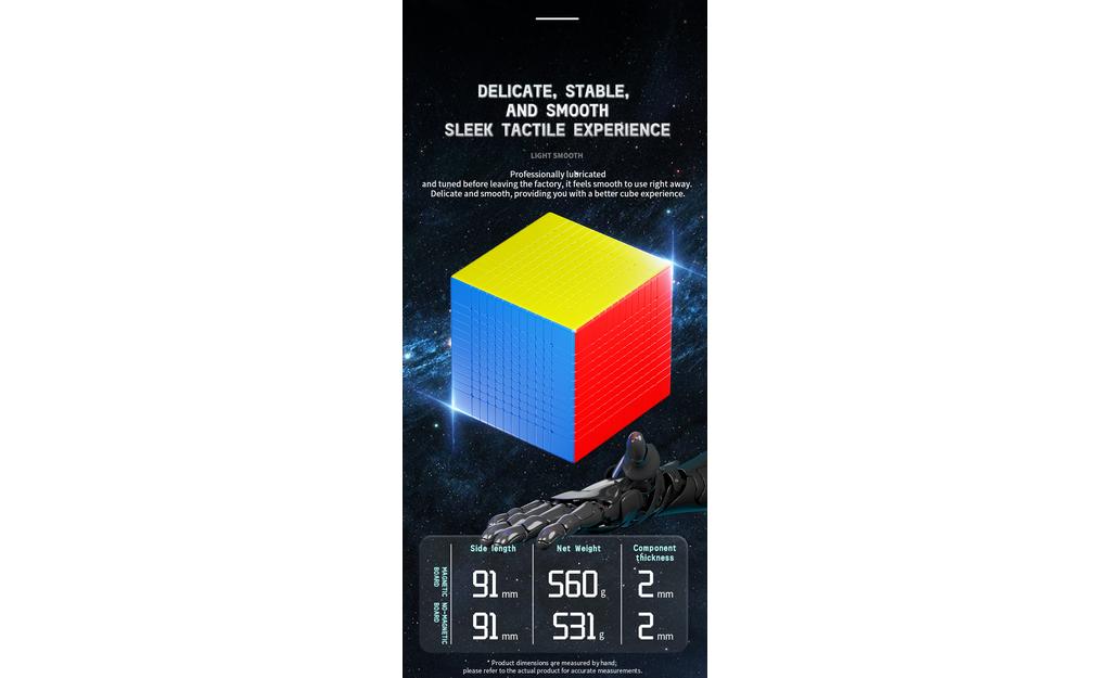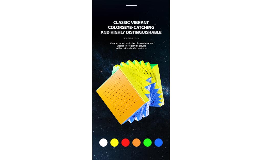 The ShengShou MoSheng 12x12 is a high-order 12x12 speed cube made for big-cube enthusiasts who want a smoother, more manageable solve on a massive puzzle. A refined internal structure is designed to keep turning light, smooth, and effortless for its size, helping reduce fatigue during long sessions. With a 91 mm footprint and a grippy frosted finish, it’s a great option for collectors, big-cube solvers, and anyone ready to step up from standard NxN cubes into true high-order territory.