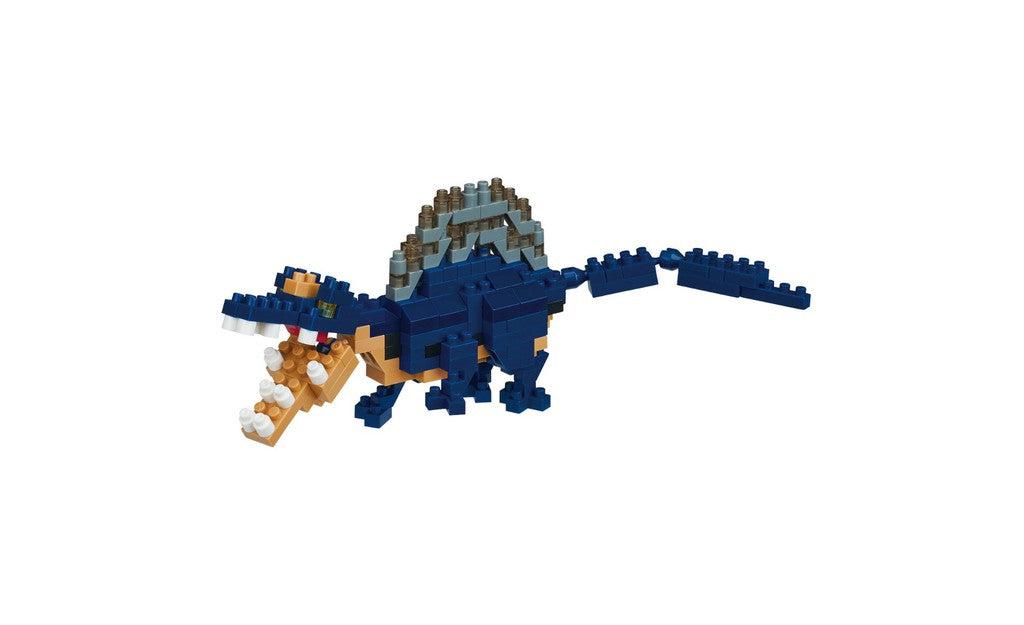 Spinosaurus from Nanoblock's Collection series stands approximately 2.0" tall and has 180 pieces. This kit features all the details one would expect and is fun and easy to build!