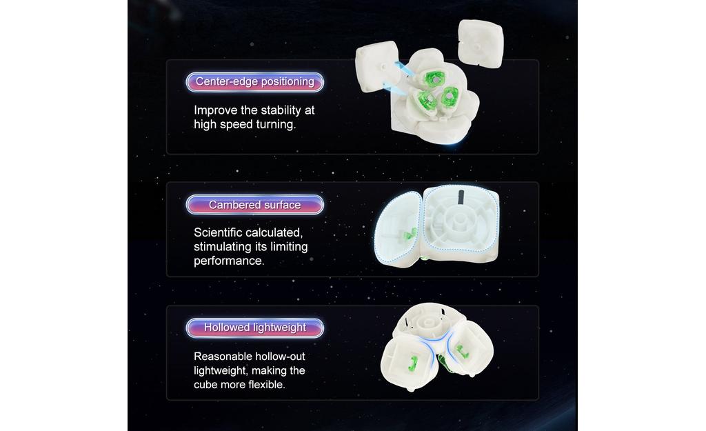 Hollowed lightweight design: Reduces mass while keeping the cube flexible and fast.